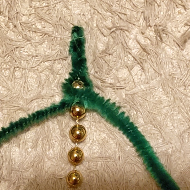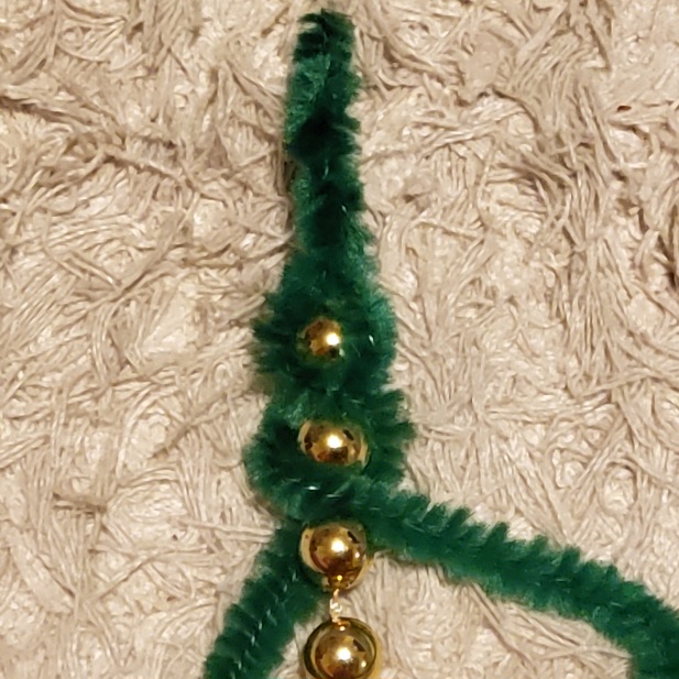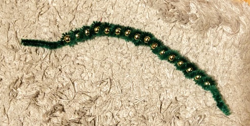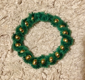 4. lépés: Ismételjük addig, amíg a "fonat" körülbelül 15 cm hosszú lesz, de igény szerint készíthetünk rövidebbet, vagy hoszabbat is, attól függően, mekkora átmérőjú koszorút szeretnénk kapni, akár egészen addig, amíg el nem fogy a zseníliadrót hossza. 15 cm hosszú fonatból kb. 5 cm, egy egész zseníliadrótból (kb. 20 cm) kb. 7 cm átmérőjű koszorú fog készülni.