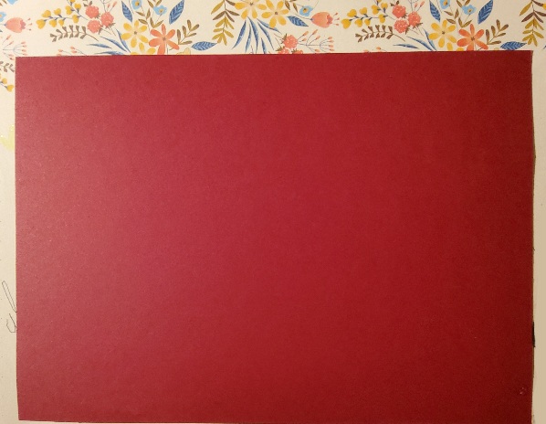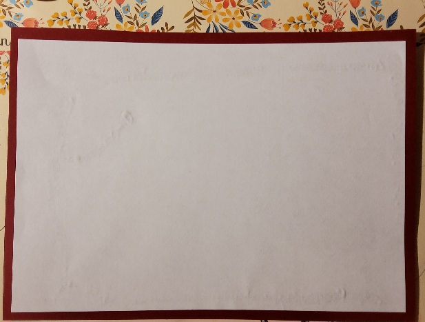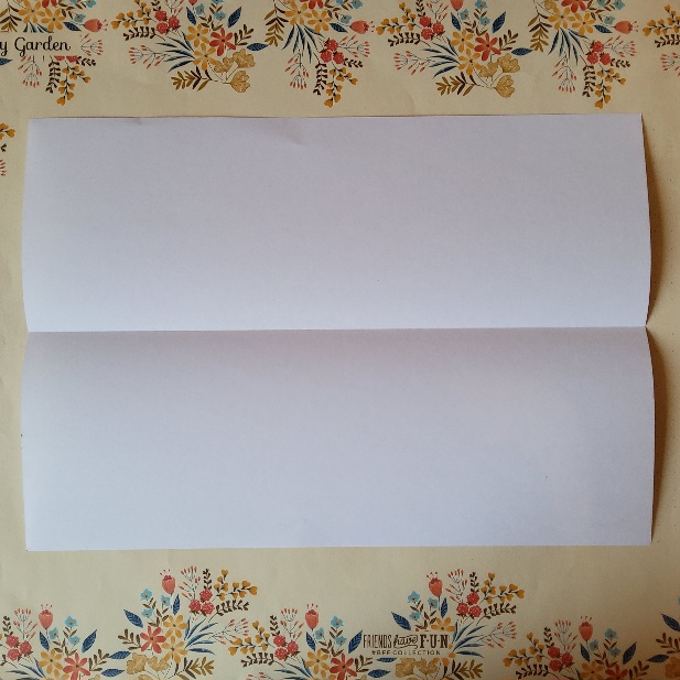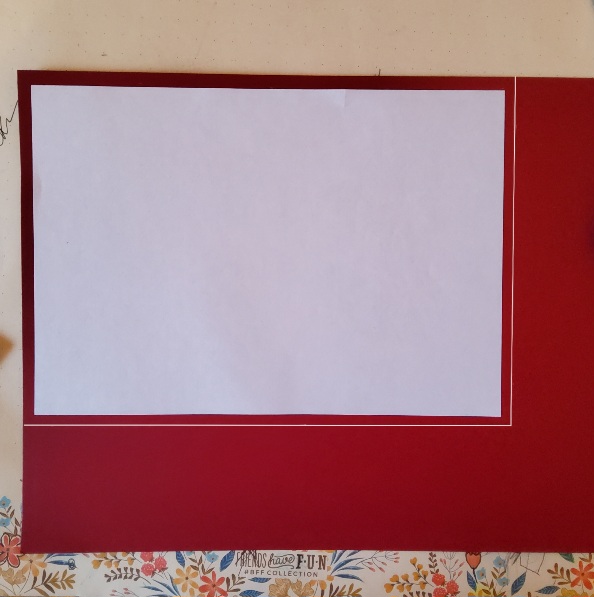 1. lépés: A vastag papíron jelöljünk ki egy téglalapot úgy, hogy az az írólapnál (A5) minden oldala 5 mm-rel hosszabb legyen!