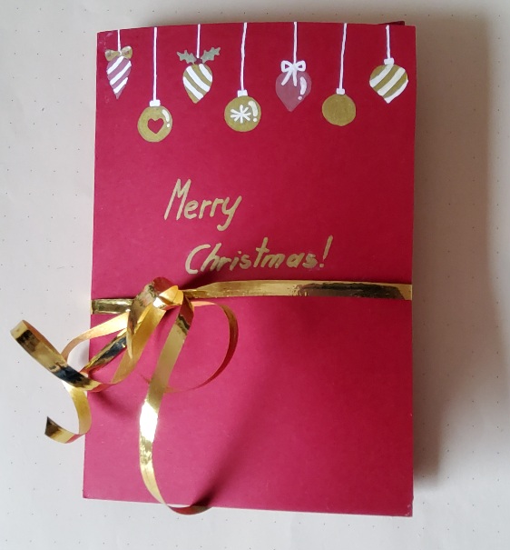 Alapanyagok: 1 db A4-es zöld színű papír, 1 db A4-es valamilyen karácsonyi színű vastag papír, 1 db írólap, színes ceruzák vagy filctollak (grafitceruza, radír, hegyező), stiftes ragasztó, és esetleg karácsonyi matricák, dekortapaszok, gyöngyök, szalagok, színes papírok, ragasztópisztoly és egy tűfilc is jól jöhet a díszítéshez.