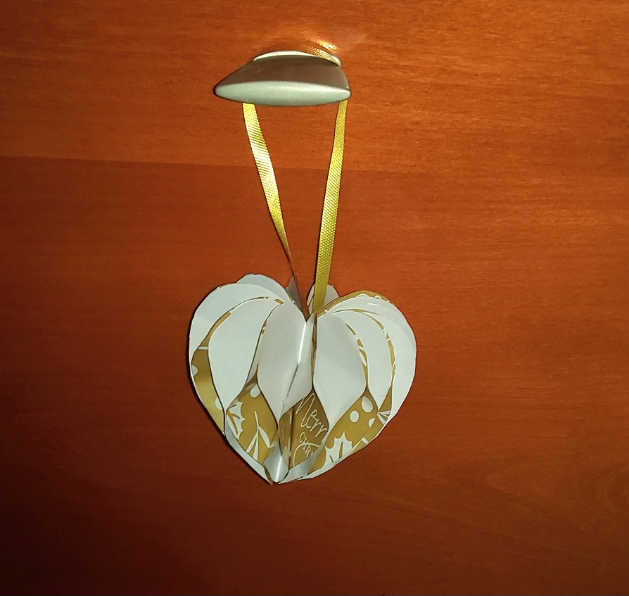 Ennek a dísznek az elkészítése egy korábbi cikkben bemutatott technikán alapul, csupán annyi a különbség, hogy nem körökből, hanem szívekből készítjük el, így nem gömb, hanem térbeli szív formája lesz.