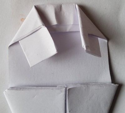 9. lépés: A két sarkát hajtsuk fel a felezővonalig!