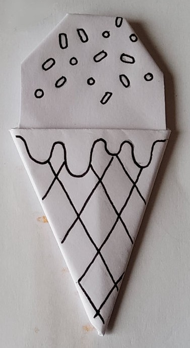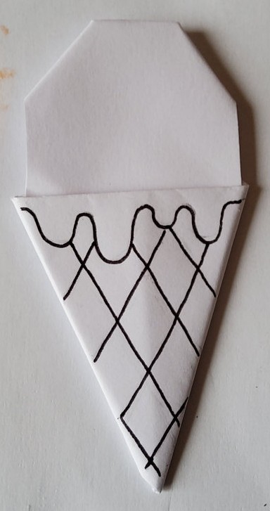 Most megmutatjuk, hogyan kell fagyit hajtogatni. A fagyink két részből fog állni: a tölcsérből és a gombócból.