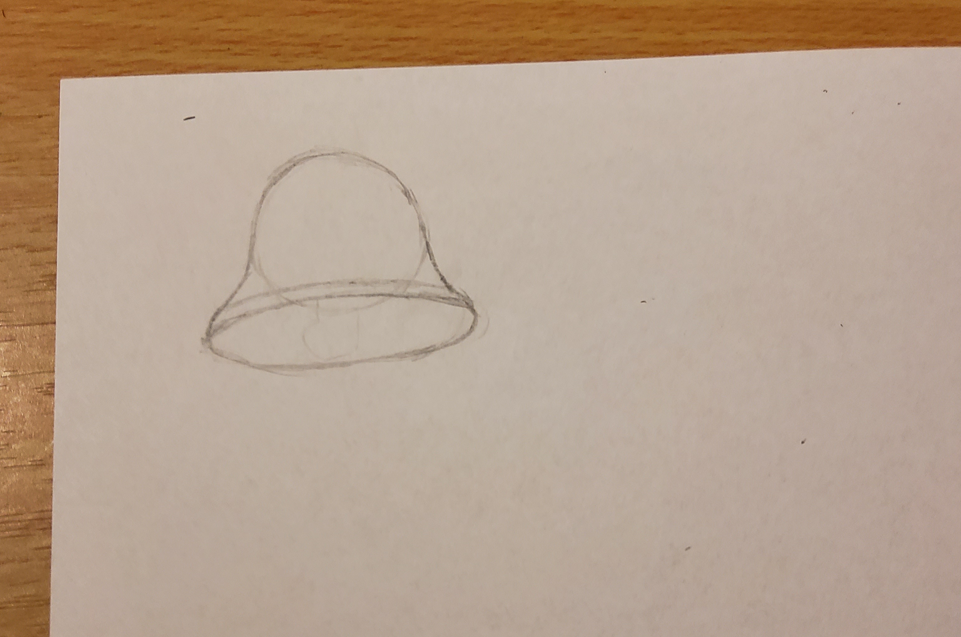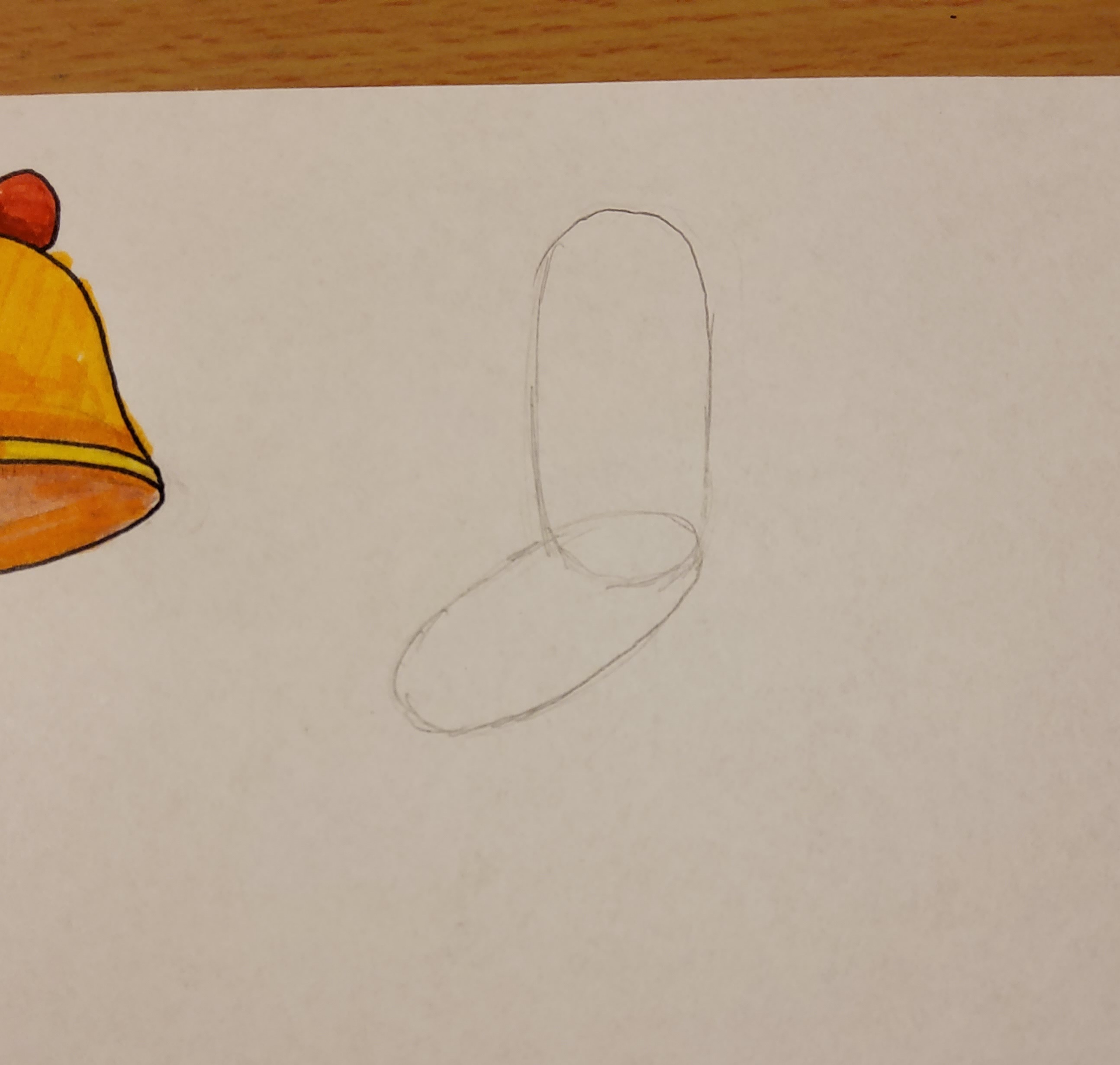 1. lépés: Vázoljunk fel egy nagy kört, és az alá egy keskeny, elnyújtott oválist! Ez lesz a csengő alapja.