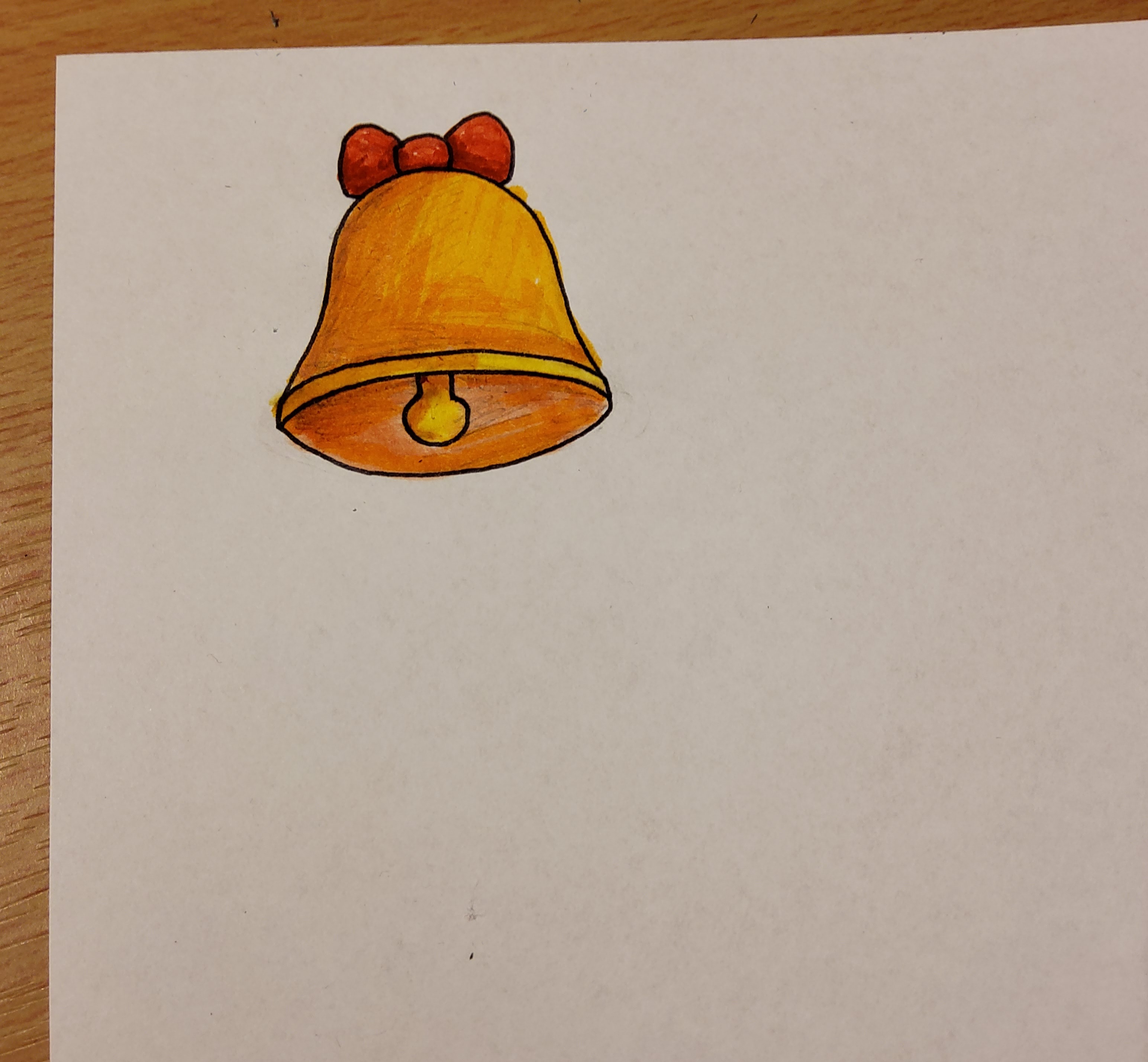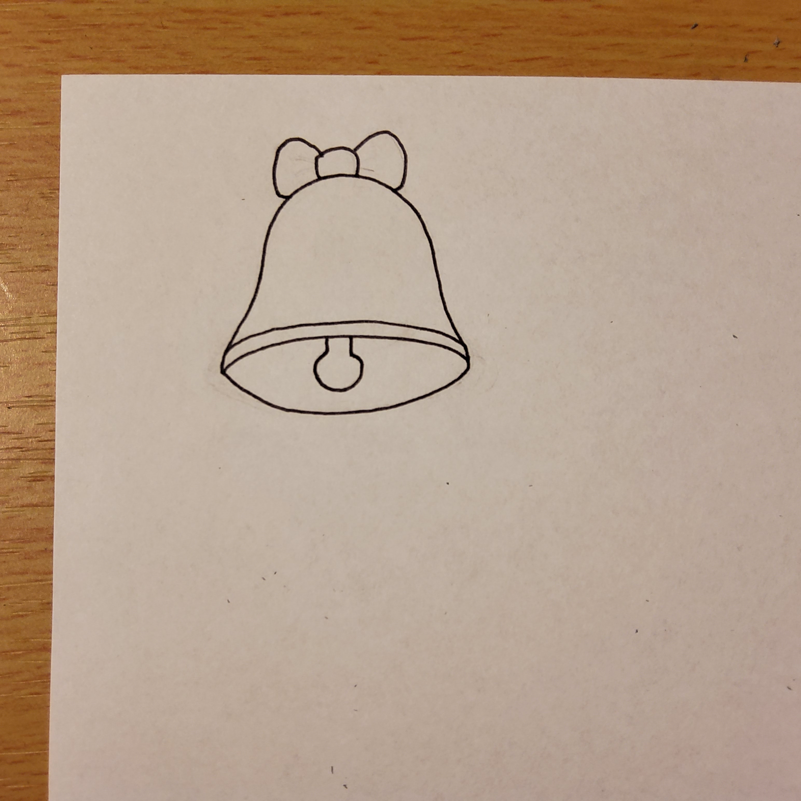 5. lépés: Színezzük ki a csengőt és a masnit! Kész is ez a motívum!