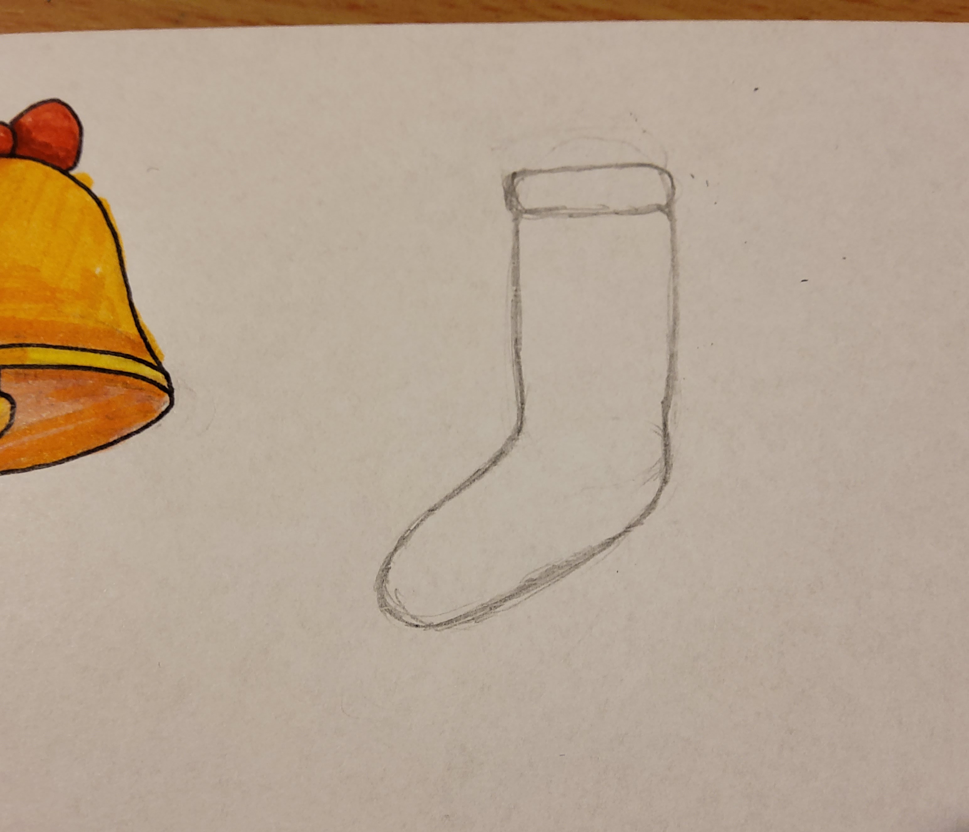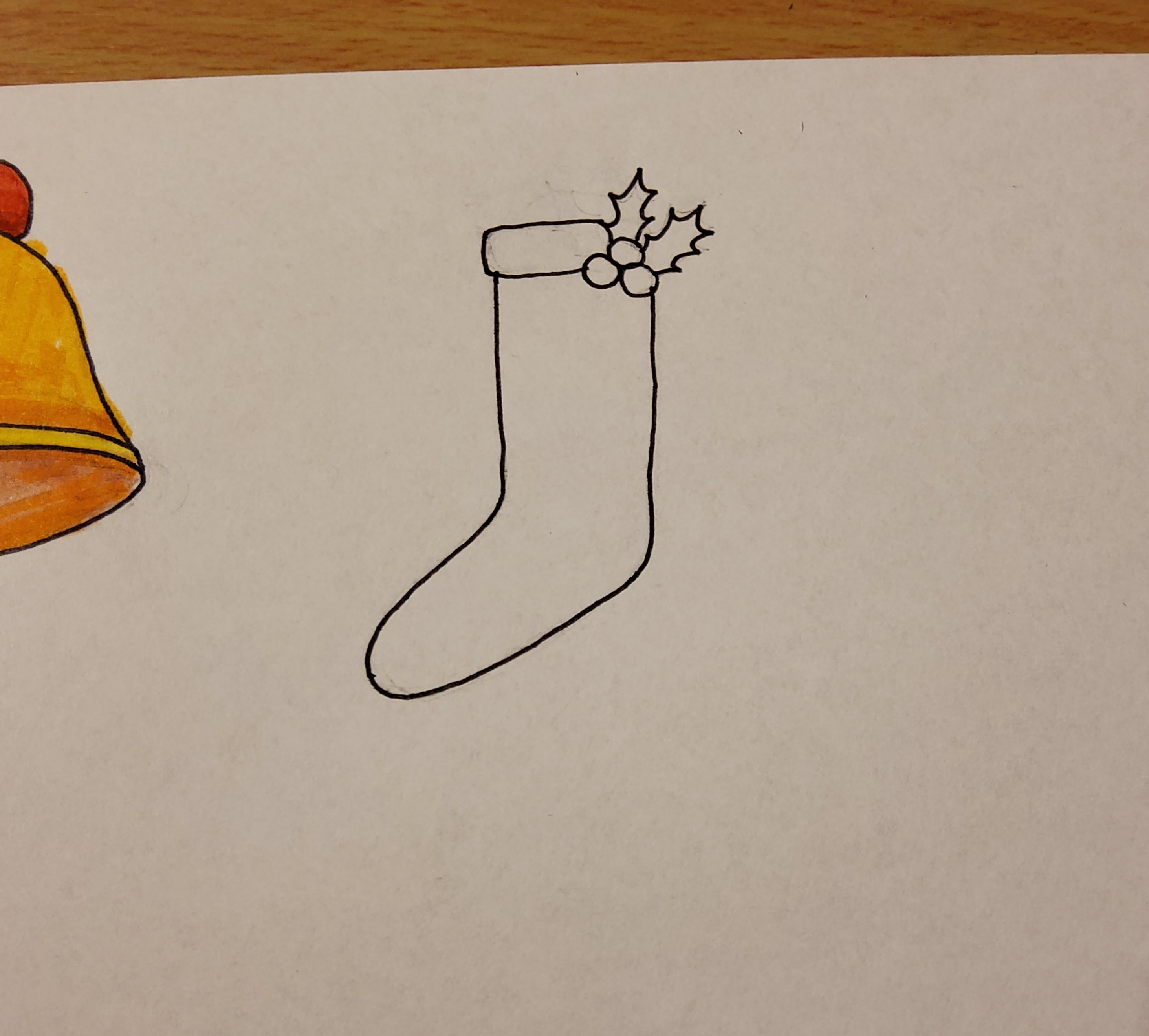 5. lépés: Színezzük ki a karácsonyi zoknit! El is készült egy újabb motívum.