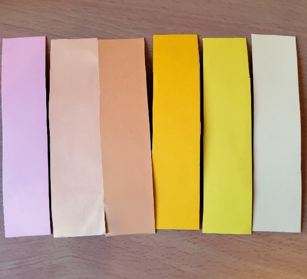 5. lépés: Válogassunk össze annyiféle színes papírt, amennyi könyvjelzőt készítünk! Ügyeljünk rá, hogy a színek jól mutassanak együtt! Tipp: Ha szeretnénk, lehet az összes hátuljára ugyanolyan színűt ragasztani, vagy egy árnyalatot többször is használni, nem feltétlenül kell mindnek különböző színűnek lennie.