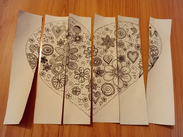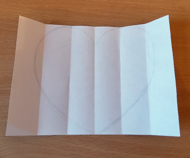 2. lépés: Vázoljunk fel a lapra egy nagy szívet! Ügyeljünk rá, hogy mindegyik könyvjelző tartalmazzon egy részletet a szívből, ne legyen teljesen üres közöttük!