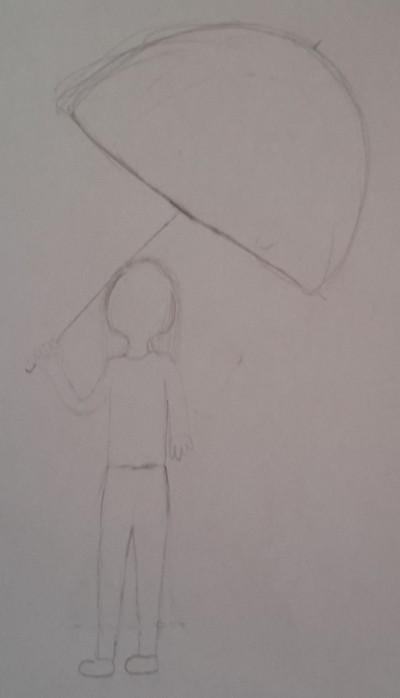 1. lépés: Vázoljuk fel az esernyőt és az embert (A lenti rajzon egy gyerek lesz)!
