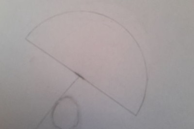 3. lépés: Radírozzuk ki a megrajzolt esernyő tetejét, majd tegyük a körzőt a megjelölt helyre, és csináljunk vele egy szabályos félkört a kiradírozott esernyő helyére. Ez lesz az esernyő teteje. Az alját vonalzóval kössük össze, ez lesz az alja. kész is a szabályos esernyő alak! Ha szükséges, állítsuk át a körzőt más méretre. (Mi 4 cm-esre terveztük az ívet, de végül 4,5 cm-es lett.)