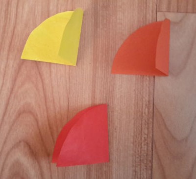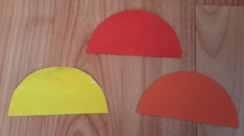 4. lépés: A színes papírokra is rajzoljunk ugyanilyen méretű félköröket, majd vágjuk ki őket.