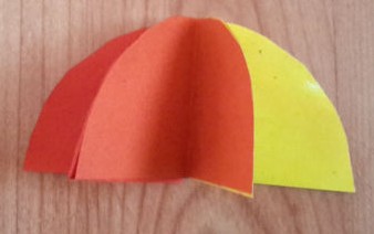 6. lépés: Ragasszuk őket össze a lenti képen látható módon, úgy, hogy az esernyőnek a felső részére emlékeztető alakja legyen.