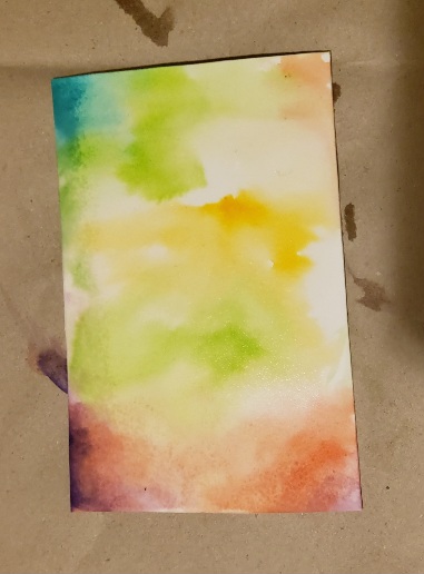 2. lépés: Készítsük elő a festéket és a vizet, majd egy nagyméretű ecsettel vizezzük be a lap egész felületét! Ezután vigyük fel a színeket a lapra, folyassuk szét őket! Vidám, tavaszi színeket használjunk! Ha a lap és a festék minősége megfelelő, a festék magától is folyni fog a lapon, de mi is rásegíthetünk vizes ecset használatával. Gyors, könnyed ecsetvonásokkal dolgozzunk, és vigyázzunk, hogy ne száradjon meg a lap, mielőtt szétfolyatnánk a színeket! Ha nem festőpapíron dolgozunk, ne vizezzük be az elején a lapot, vizet elég csak a színek összemosásához használnunk. Így kevésbé ázik majd át a papír, viszont az összhatás semmiképpen sem lesz a festőpapírra készült alkotáshoz fogható.