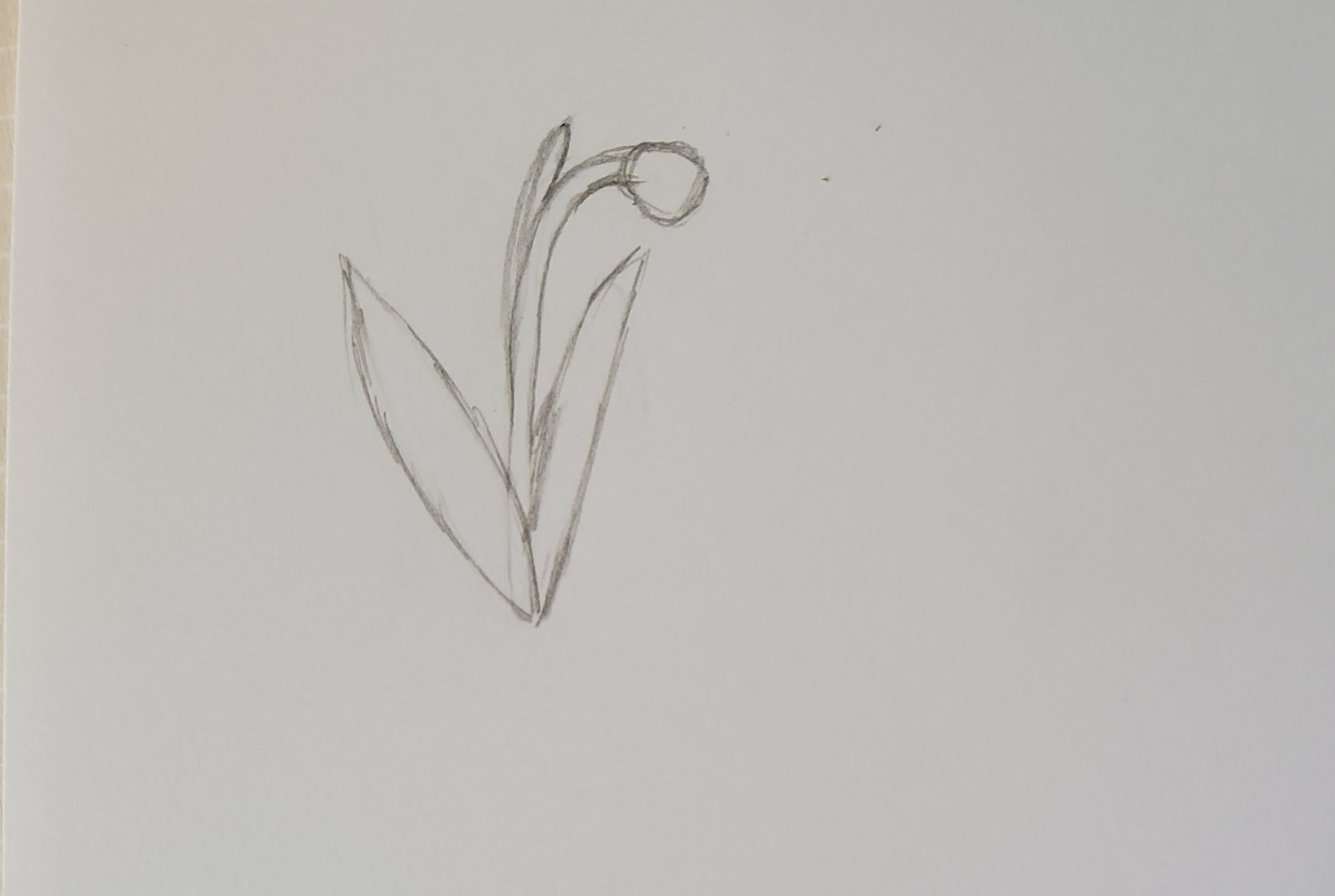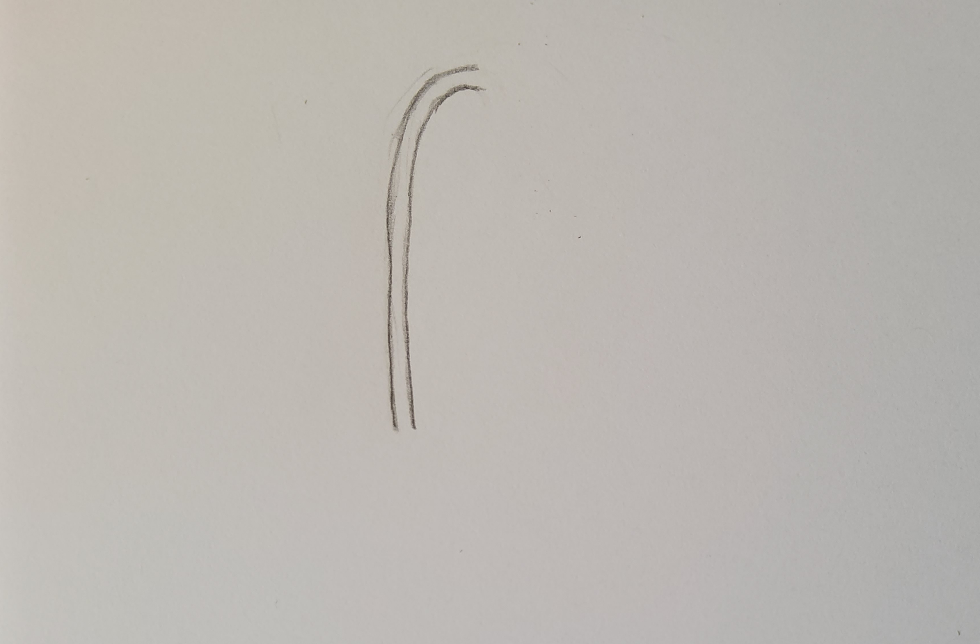 1. lépés: Vázoljuk fel a szár ívét! Nagyjából egyenes legyen, csak a vége hajoljon lefelé!