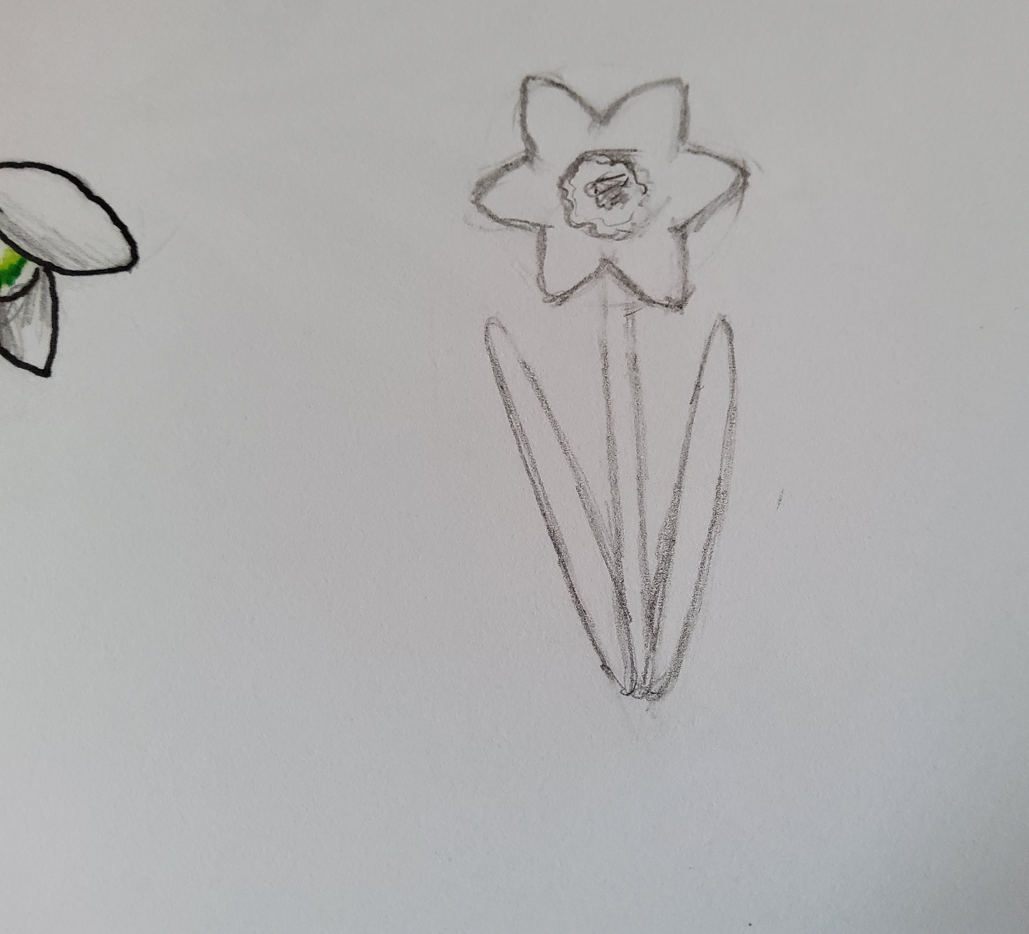 4. lépés: Rajzoljuk meg a szirmokat! A nárcisznak hat szirma van, melyek picit lekerekítettek. A szirmok megrajzolása után kiradírozhatjuk a kört.