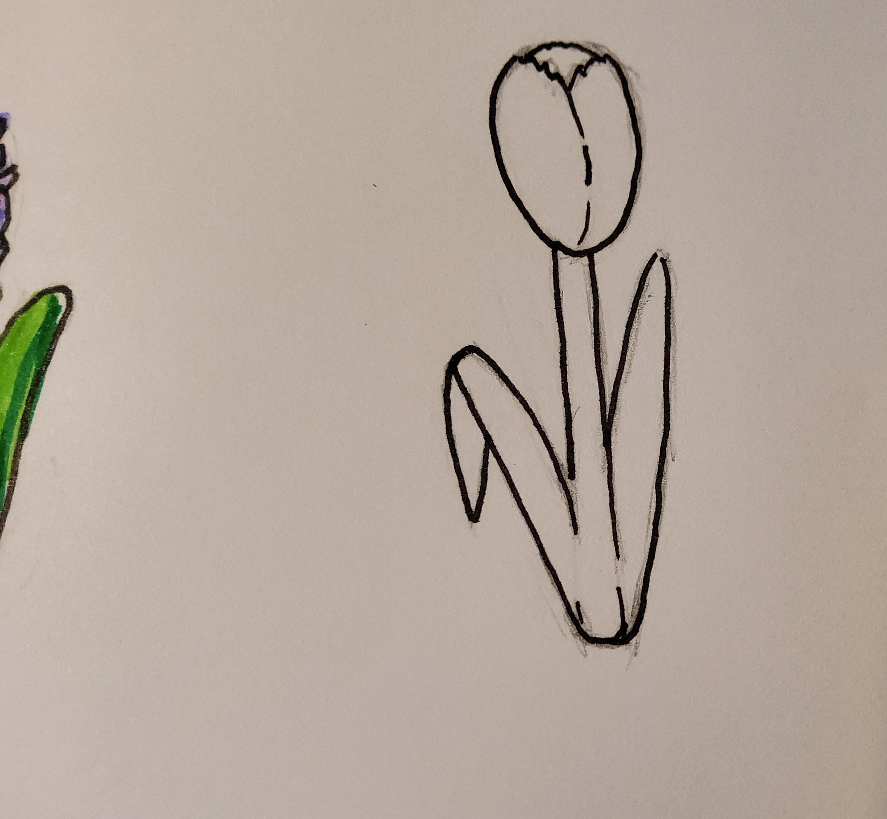 4. lépés: Rajzoljuk meg a szirmokat! A képen egy bimbózó tulipán látható.